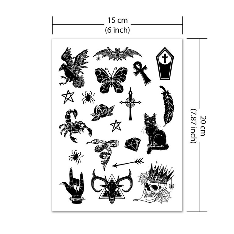 Wirester Temporary Tattoos For Women Girls Boys Kids Waterproof Fake Tattoos On Face Hand Neck Wrist Arm Shoulder Chest Back Legs Set Gothic Nbsp Line Designs Scorpion Skulls Cross Cat Bat Walmart Com
